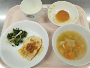 さかなのあまずソース いそあえ かぶのスープ (おやつ)ぎゅうにゅう クリームパン