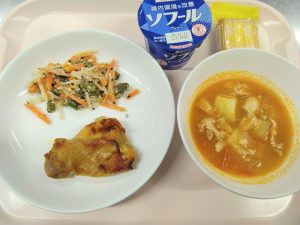 とりにくのカレーふうみやき ゆたかあえ わふうトマトポトフ(おやつ)ヨーグルト ビスケット