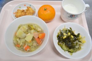 ポトフ はるさめとわかめのサラダ みかん(おやつ)ぎゅうにゅう コーンフレーククッキー