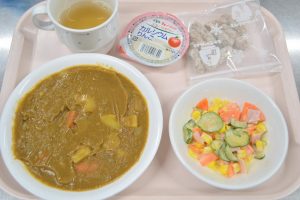 ツナカレー コーンサラダ ゼリー(おやつ)むぎちゃ かりんとう