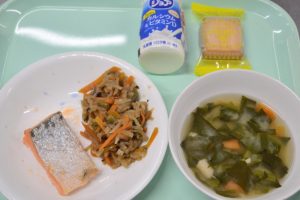 やきざかな きりぼしだいこんのいりに ほうれんそうのみそしる (おやつ)ジョア ビスケット