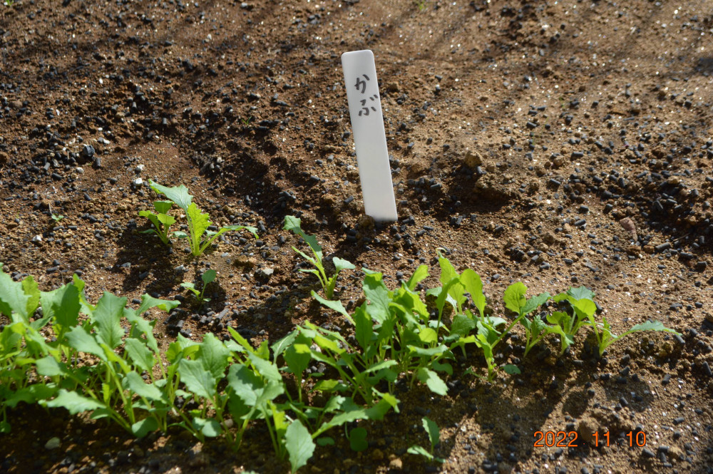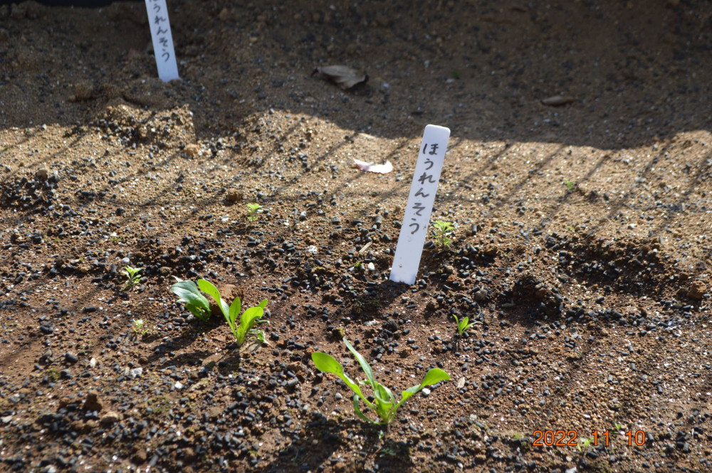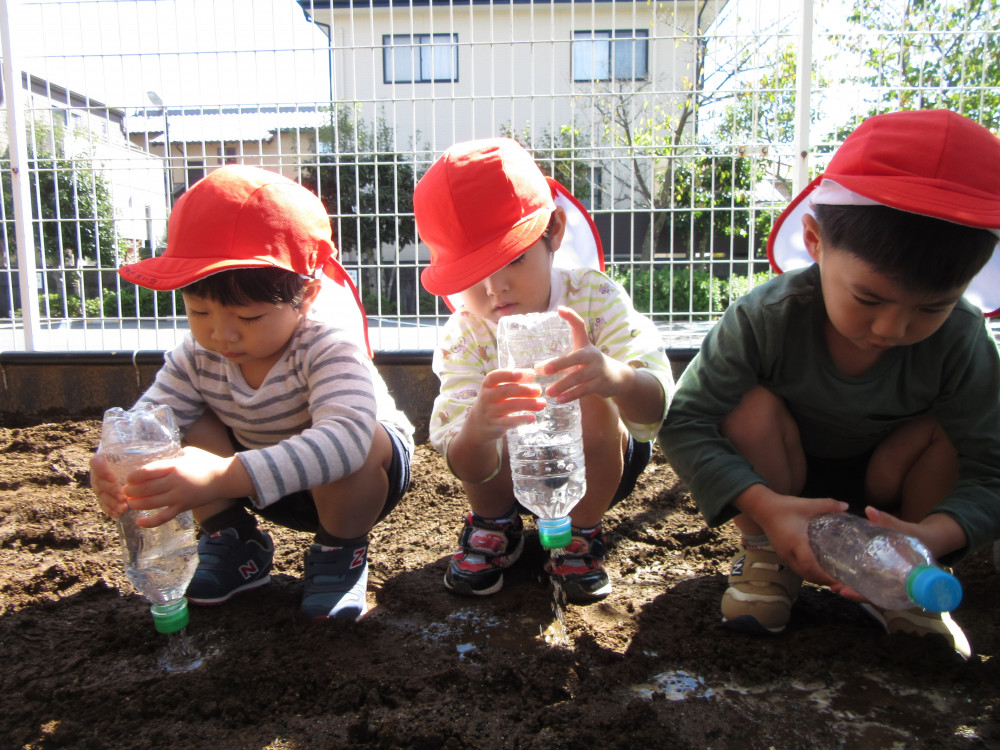 3,4,5歳児が10月に冬の野菜の苗植え、種まきをしました。お当番さんが水やりをして、みんなで毎日観察。大きくなっていますよ!もっともっとおおきくな~あれ❢