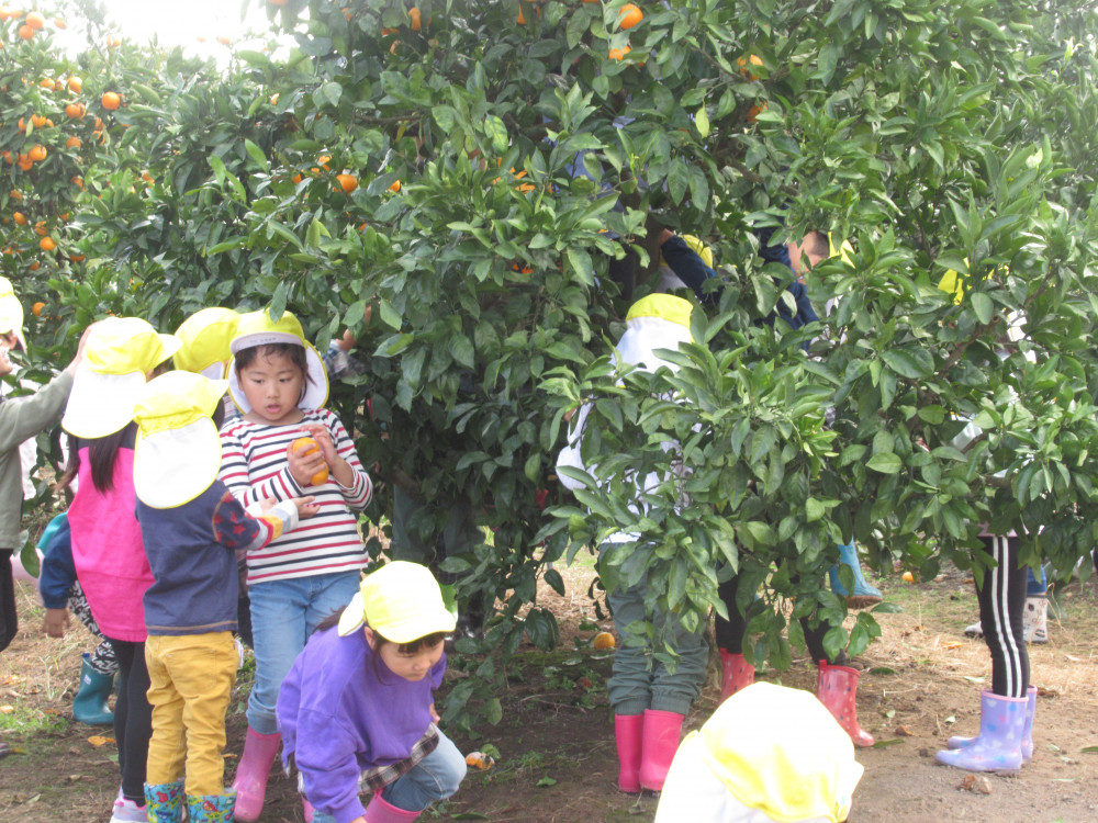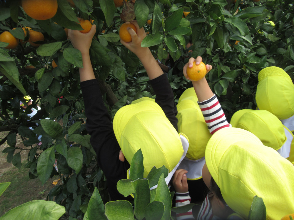 今日は、4,5歳児の子ども達が静大農学部附属地域フィールド科学教育研究センターにみかん狩りに行ってきました。
