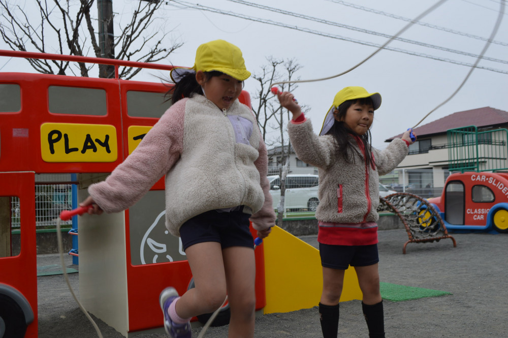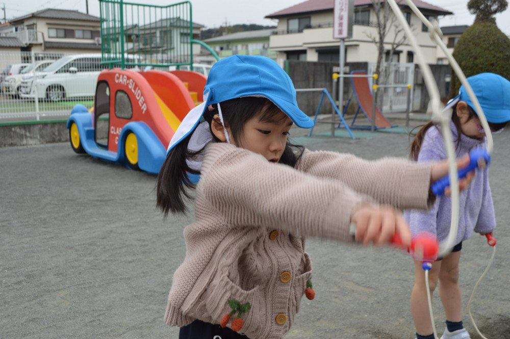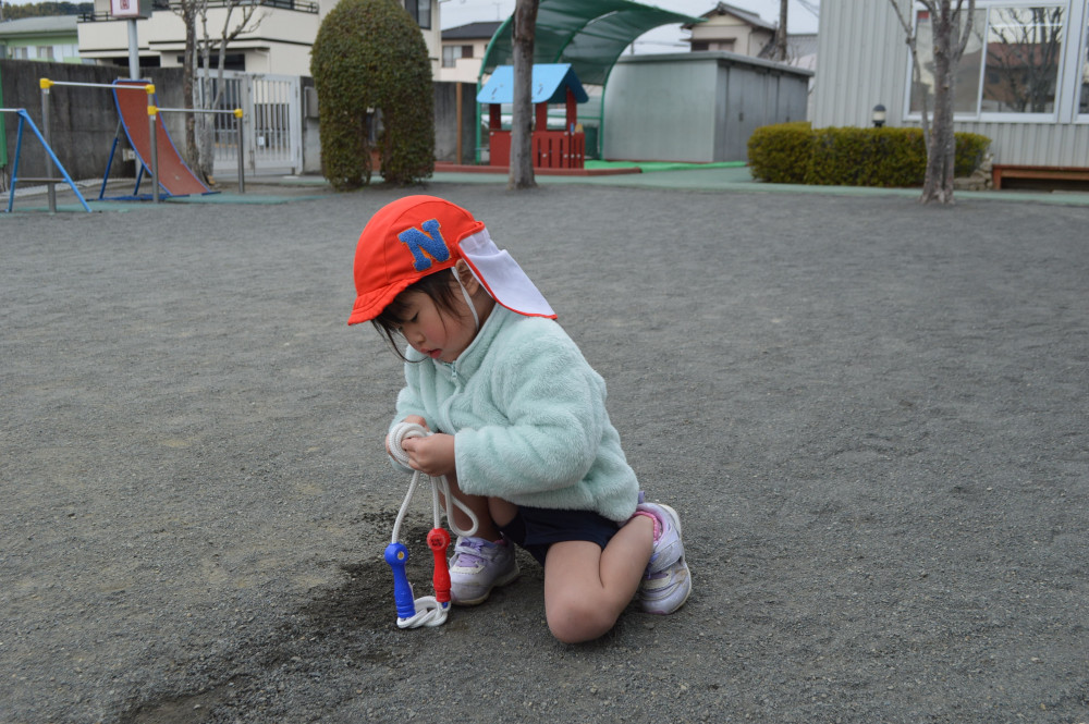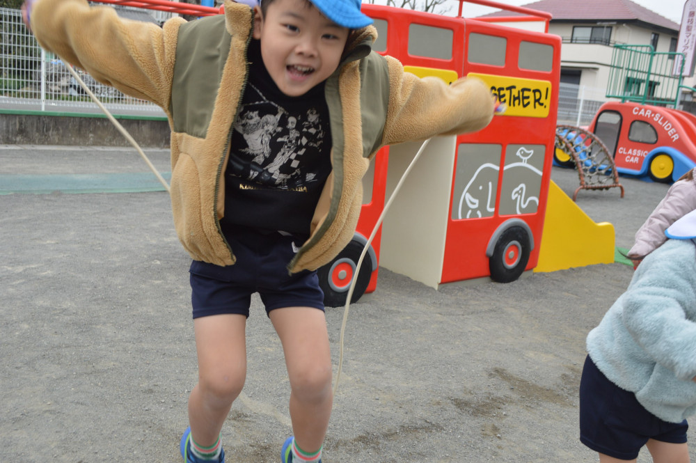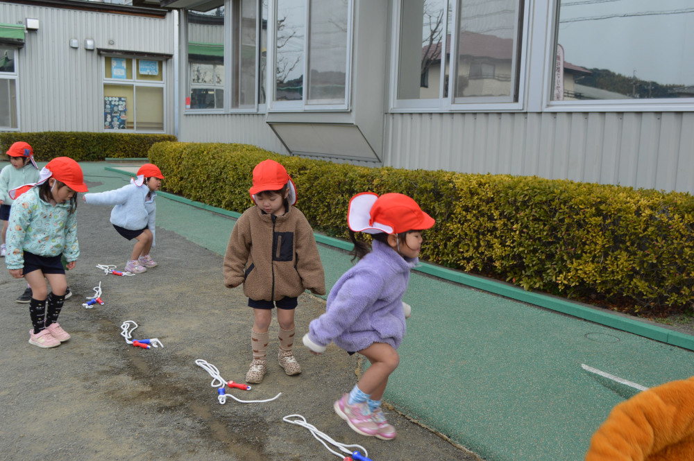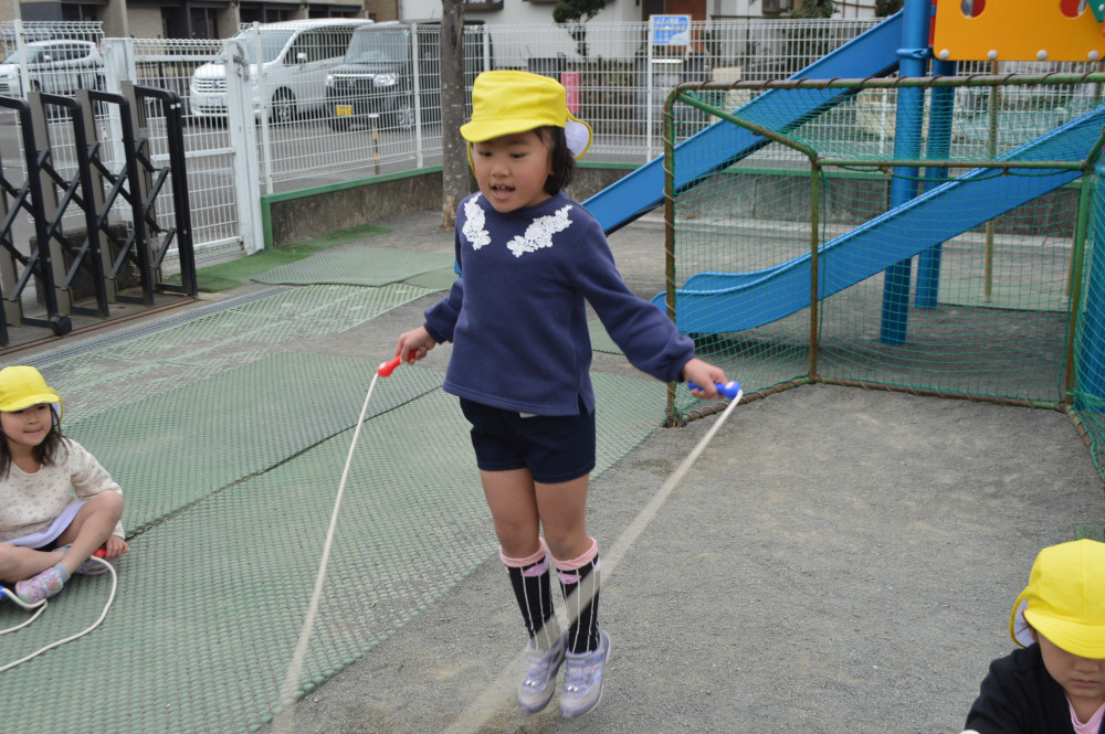 今日は、てんし・ヨゼフ・マリア組の子ども達のなわとび大会。園庭に出たばかりの時には、子ども達も「さむ~い‼」と口々に言っていましたが、なわとび大会が始まると、体がポカポカするくらい、一生懸命跳んでいました。どの子も自分の目標に向かって、「がんばる‼」その気持ちに満ち溢れていましたよ。