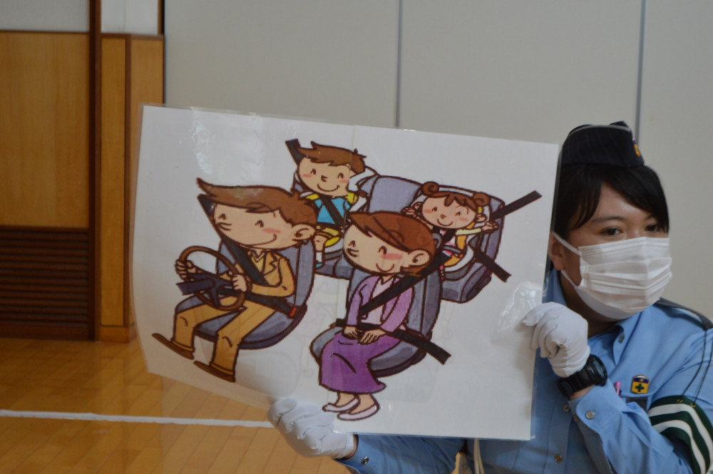 子ども達にはもう一つ、「車に乗るときには、チャイルドシートなどに座って乗ることを守りましょうね!」と教えていただきました。命を守る大切なるーるは、私達大人もしっかり守って子ども達の手本になりましょう。