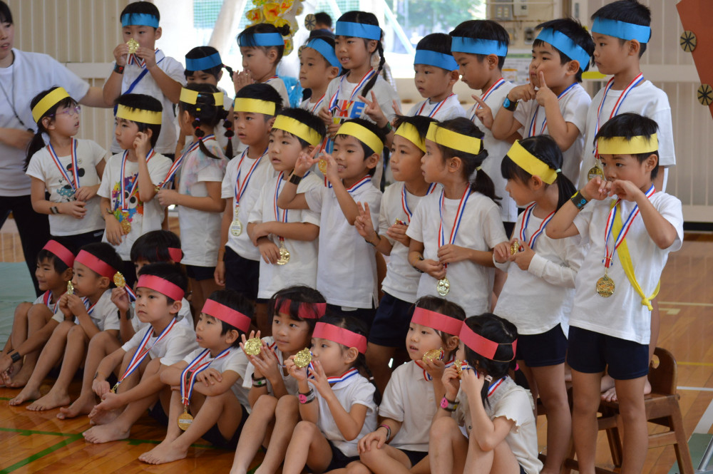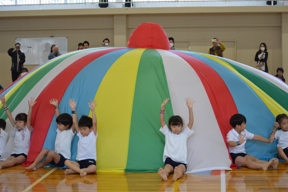 10月28日(土)3年ぶりに藤岡小学校の体育館をお借りして、藤枝聖マリア保育園 第56回運動会が開催されました。子ども達はみんな、当日を楽しみに待っていました。どの子もキラキラした笑顔で楽しく参加できました。子ども達の姿に保護者の皆様も、そして職員も感動の連続でした。一つ一つの行事を経験しながら、心身のともに成長している子ども達です。みんな、ニコニコで頑張ったね!