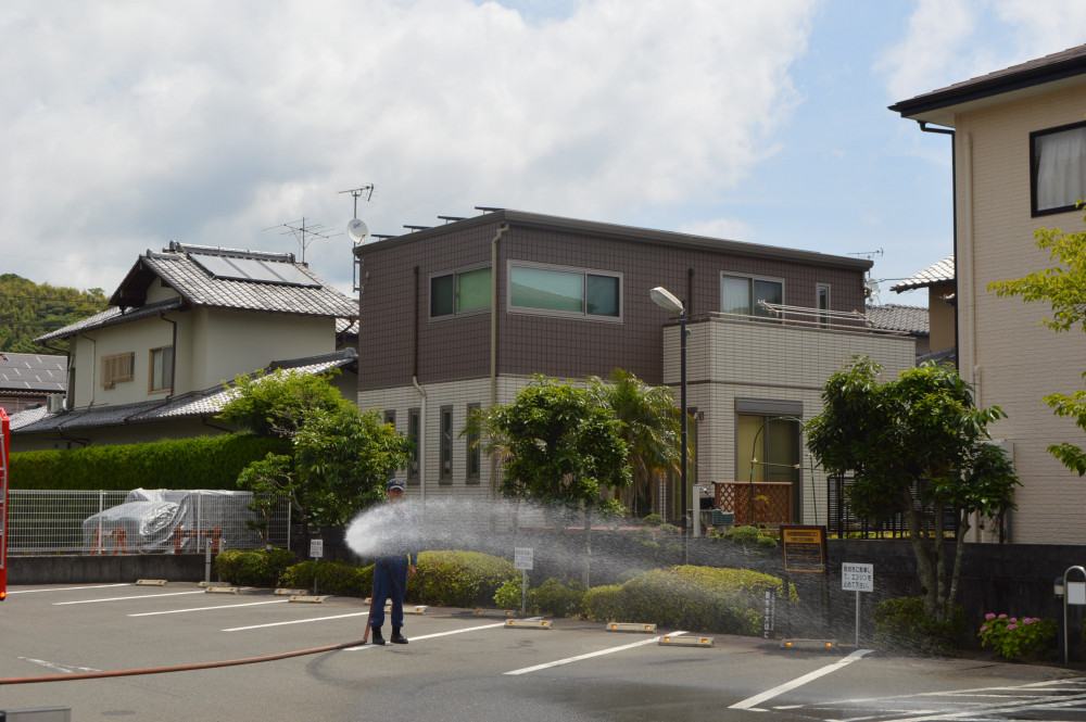 最後に、放水の様子を見せてもらいましたが、子ども達のところまで飛んでくる水しぶきにみんな大喜び‼