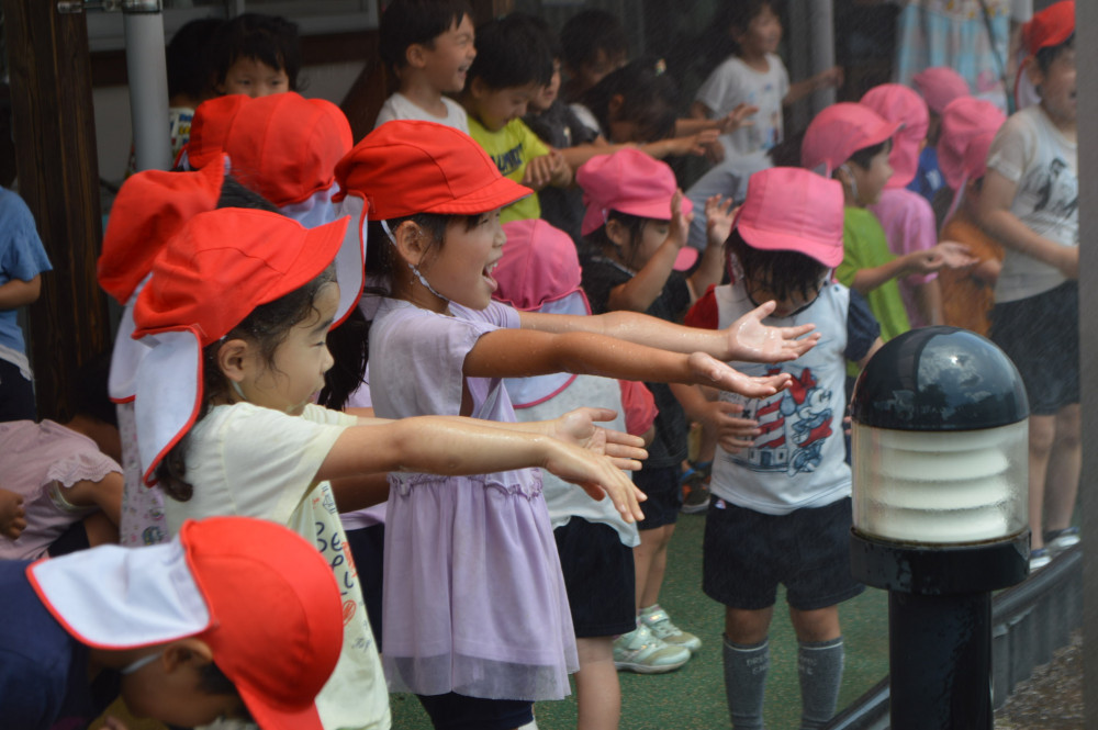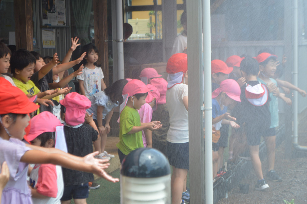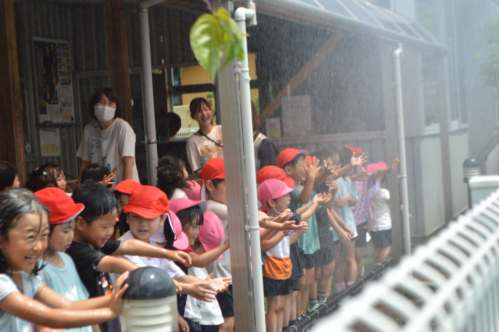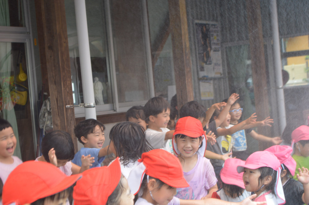 気づけば、子どもも先生たちもビショビショ💧でしたが、今日のお天気にはもってこいの気持ち良さにみんな楽しい時間を過ごせました。
