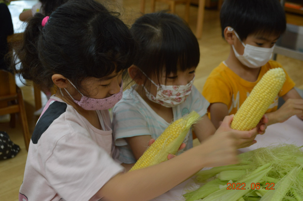 - とうもろこしの皮むき